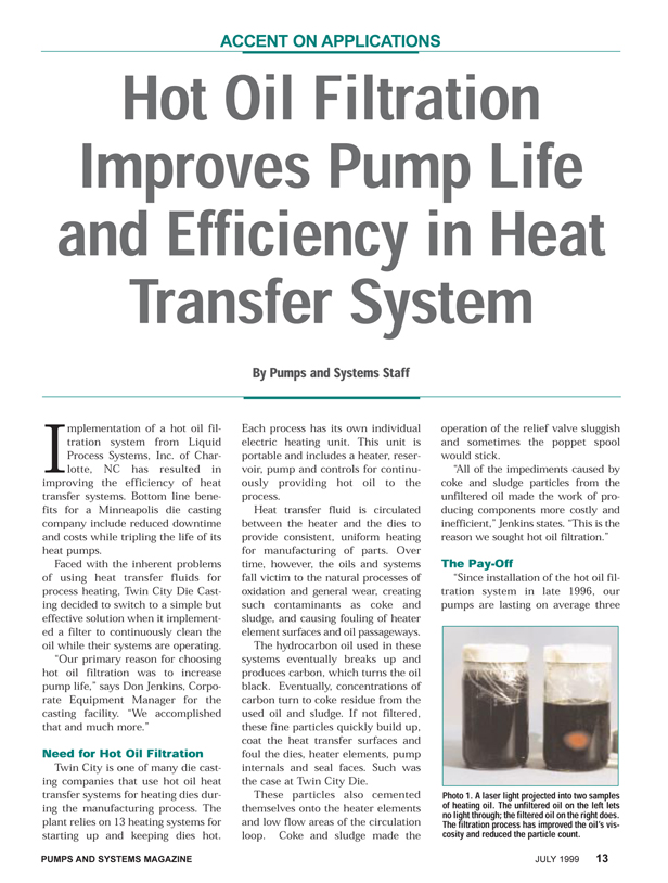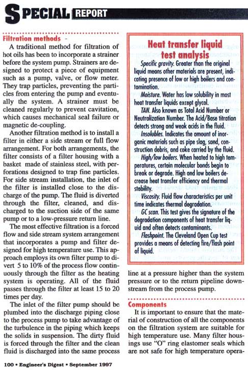 Published Information on Hot oil filtration & heat transfer fluids